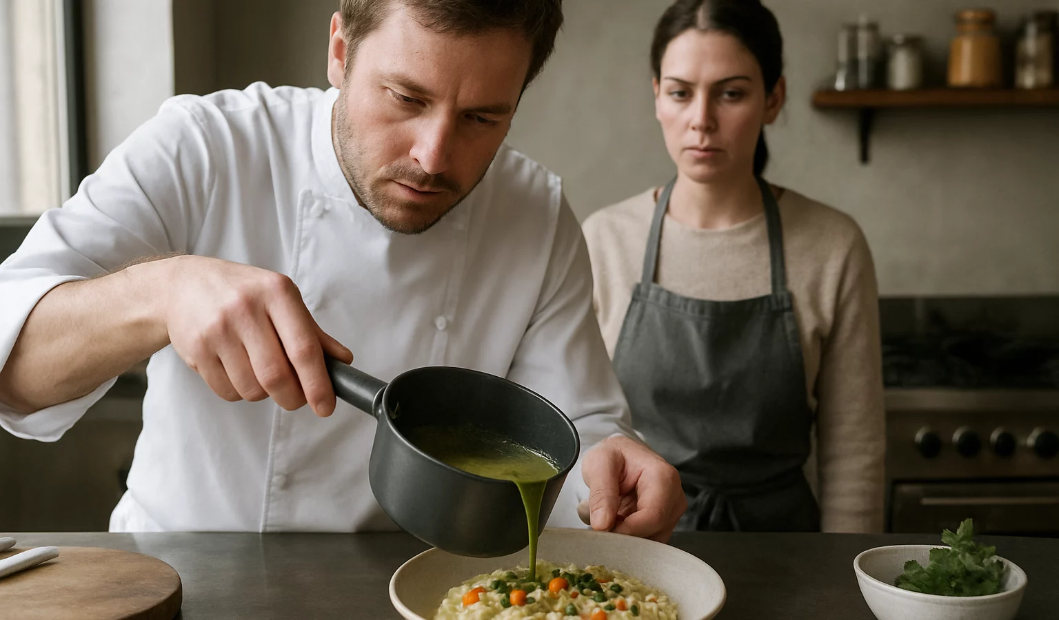 Pour une cuisson idéale, commencez par faire suer l’oignon dans un peu d’huile, torréfier le riz jusqu’à ce qu’il devienne nacré, puis ajoutez le bouillon peu à peu en remuant.